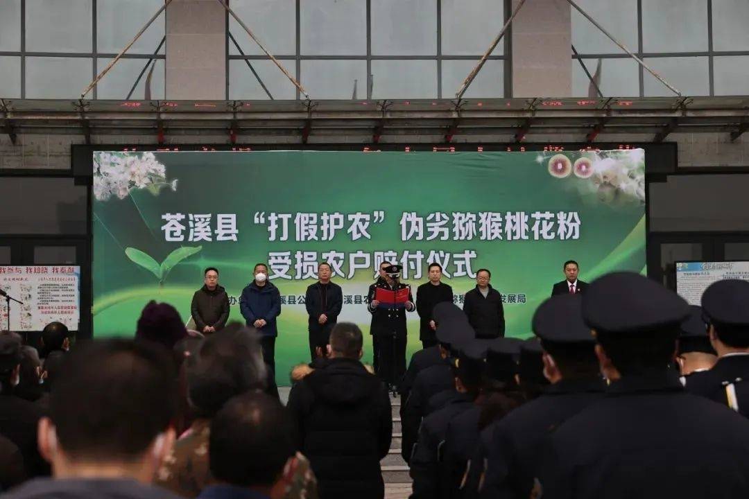 四川在线消息(杨鸿波 詹磊 刘敏)日前,苍溪县在县政务中心广场举行“打假护农”伪劣猕猴桃花粉受损农户赔付仪式。