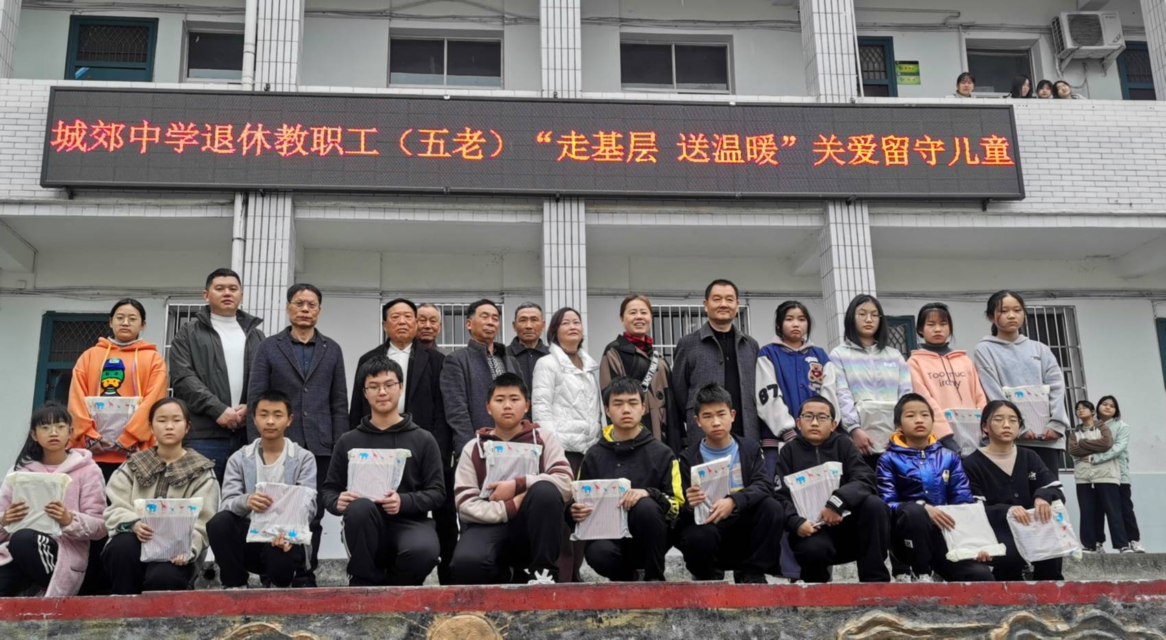 四川在线消息(赵启鹏 王皓云)近日,四川省苍溪县城郊中学校退休教师党支部、关工委组织退休教职工(五老)关工委成员一行8人,前往苍溪县岳东镇初级中学校看望学校部分留守儿童,为他们赠送了学习用具。
