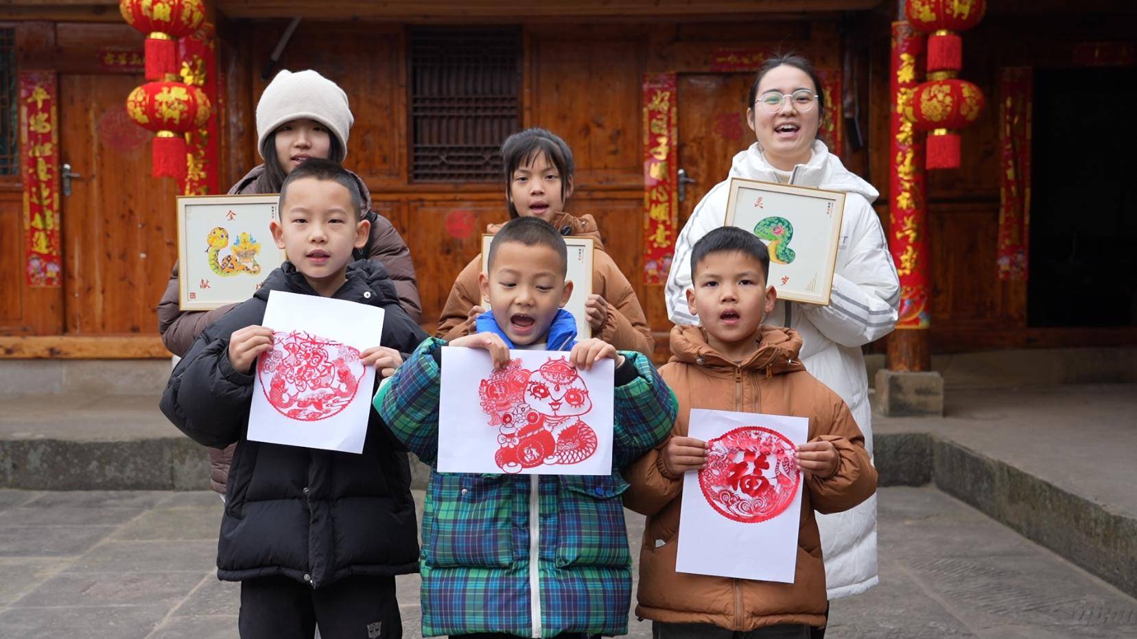 走出课堂,李自鹏受邀来到黑山村的老乡家中,与村里的老人小孩一同剪窗花、话家常,大家把自己亲手剪好的窗花,张贴在家中大门上,鲜艳灵动的窗花为寒冷的人们,送来了融融暖意和新春祝福。