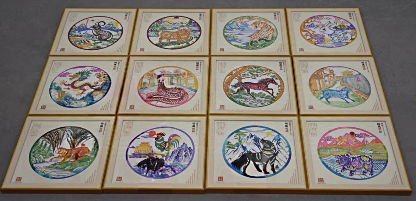 “我们用唤马的非遗文化剪纸,以广元特色地标、建筑历史文化为背景创作的十二生肖,包括蛇行昭化、鸡鸣剑门、虎啸大川、龙腾广元等12幅剪纸作品,采用点彩和染色剪纸技法,寓意蛇年大家平安富贵,大吉大利。”唤马剪纸省级非遗传承人李自鹏介绍作品。