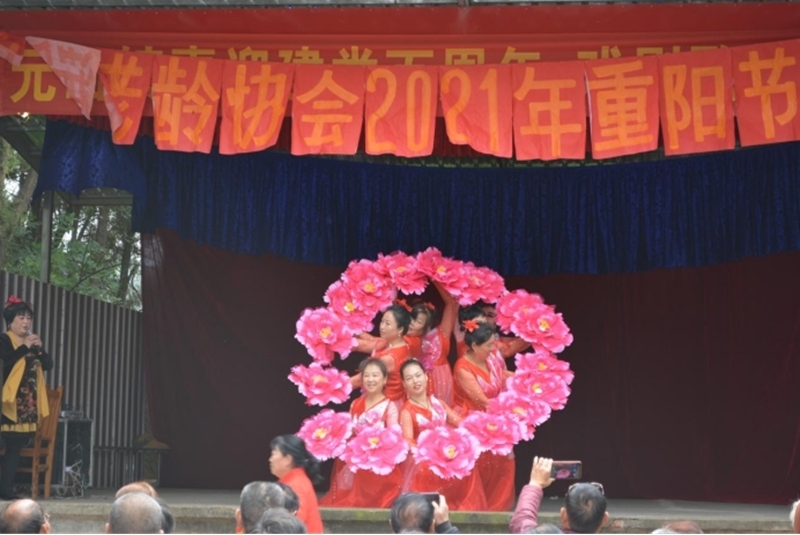“莫道桑榆晚,为霞尚满天。”元山镇老年协会,通过当地老百姓喜闻乐见的川剧、歌舞等13个文艺表演节目,为元山的老年朋友带去了欢乐和祝福,同时也展示了他们丰富多彩、开心快乐、积极向上的老年生活。舞蹈队一位满头银发却神采飞扬的老爷爷吸引了众多观众的眼球,他说:“我这就是换个方式发光发热,继续为国家老年事业做贡献。”