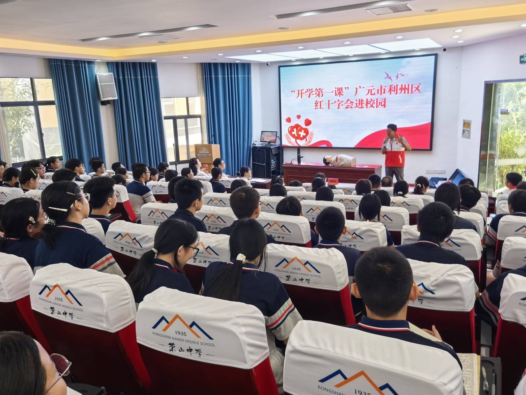 四川在线消息(乐虹辰 谭婧)9月15日,广元市利州区红十字会走进荣山初级中学,开展急救知识“开学第一课”活动,同步启动2025年度红十字青少年活动月,为该校学生带来实用的应急救护技能培训。
