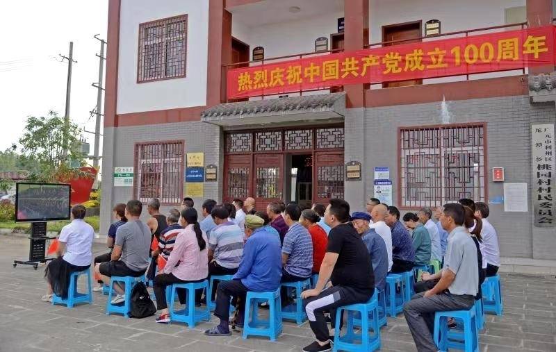 四川在线消息(李霞 记者 乐虹辰)7月1日一早,广元市利州区龙潭乡桃园村村委会的院坝里就热闹了起来。50余名党员群众早早守候在电视机前,通过电视直播收看庆祝中国共产党成立100周年大会。