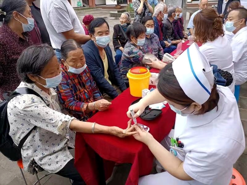 近年来,社区以党建为抓手,建立“社区党委+网格党支部+邻里党小组+党员中心户”四级组织体系,发挥基层党组织领导核心、协调各方作用。同时,牵头举办了“邻里节”“百人饺子宴”“不忘初心、牢记使命”主题教育文艺晚会;不断完善妇联工作体系,在全市首创蜂巢型妇联组织,成立老年大学舞蹈队、巾帼志愿者服务队等13个妇女组织;做实“3363”运行机制和妇儿维权“1123”广元模式;创新开展“问卷答疑”“我来说句公道话”等活动,社会矛盾持续减少、群众素质全面提升,居民获得感、幸福感不断加强,共建共治共享的社会治理格局基本形成。(图为社区开展义诊服务。)