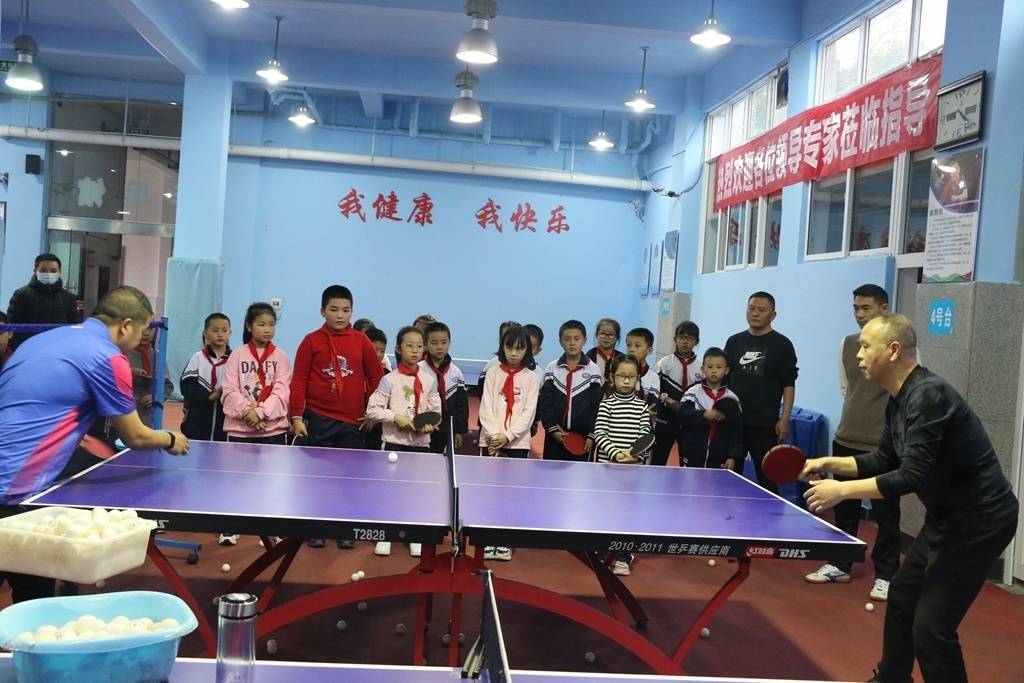四川在线消息(乐虹辰 刘颖)11月3日下午,广元市利州区东城实验小学乒乓球馆里一片热火朝天的训练景象,四川省乒乓球协会副主席、乒乓球亚洲冠军陈平西先生正在这里指导乒乓球教学,为该校乒乓球社团的教练和队员们带来了一场乒乓技术盛宴。