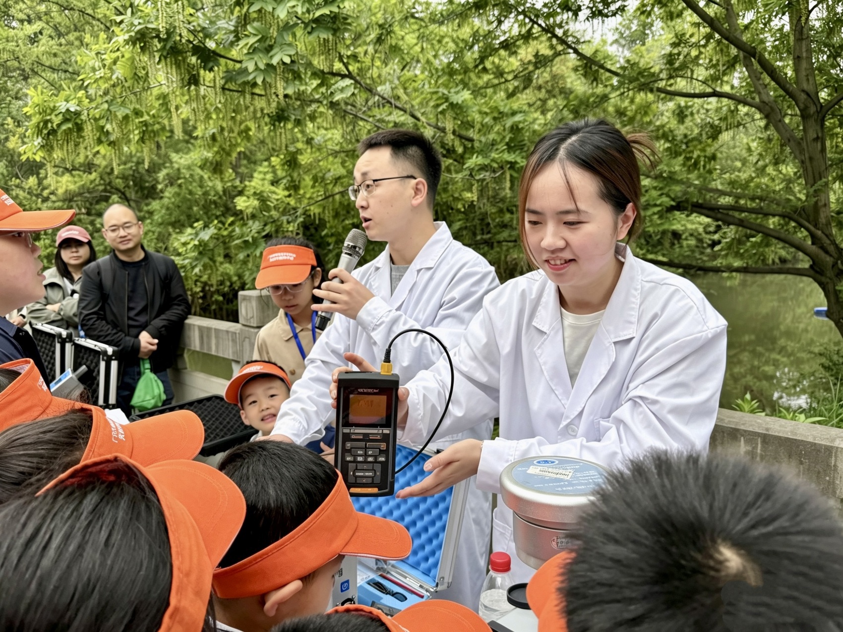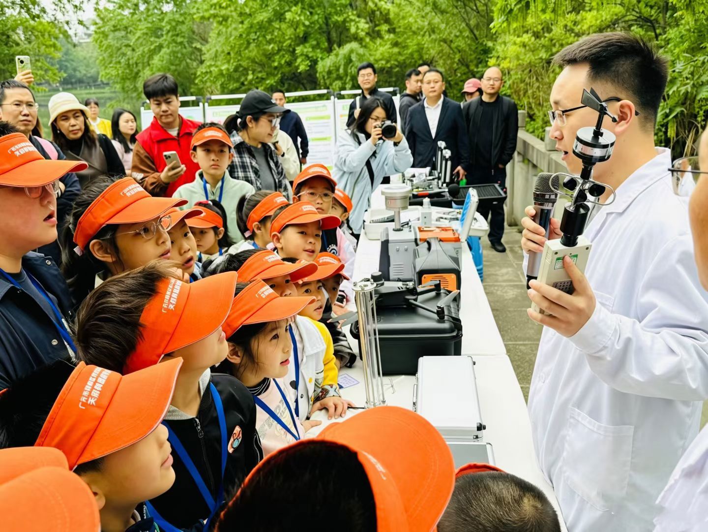 活动现场,利州生态环境局技术人员展示环境监测仪器,指导青少年现场检测噪声、负氧离子、PM2.5及水质pH值,并开展污水处理小实验,让大家直观感受科技治污、科学护水的魅力。