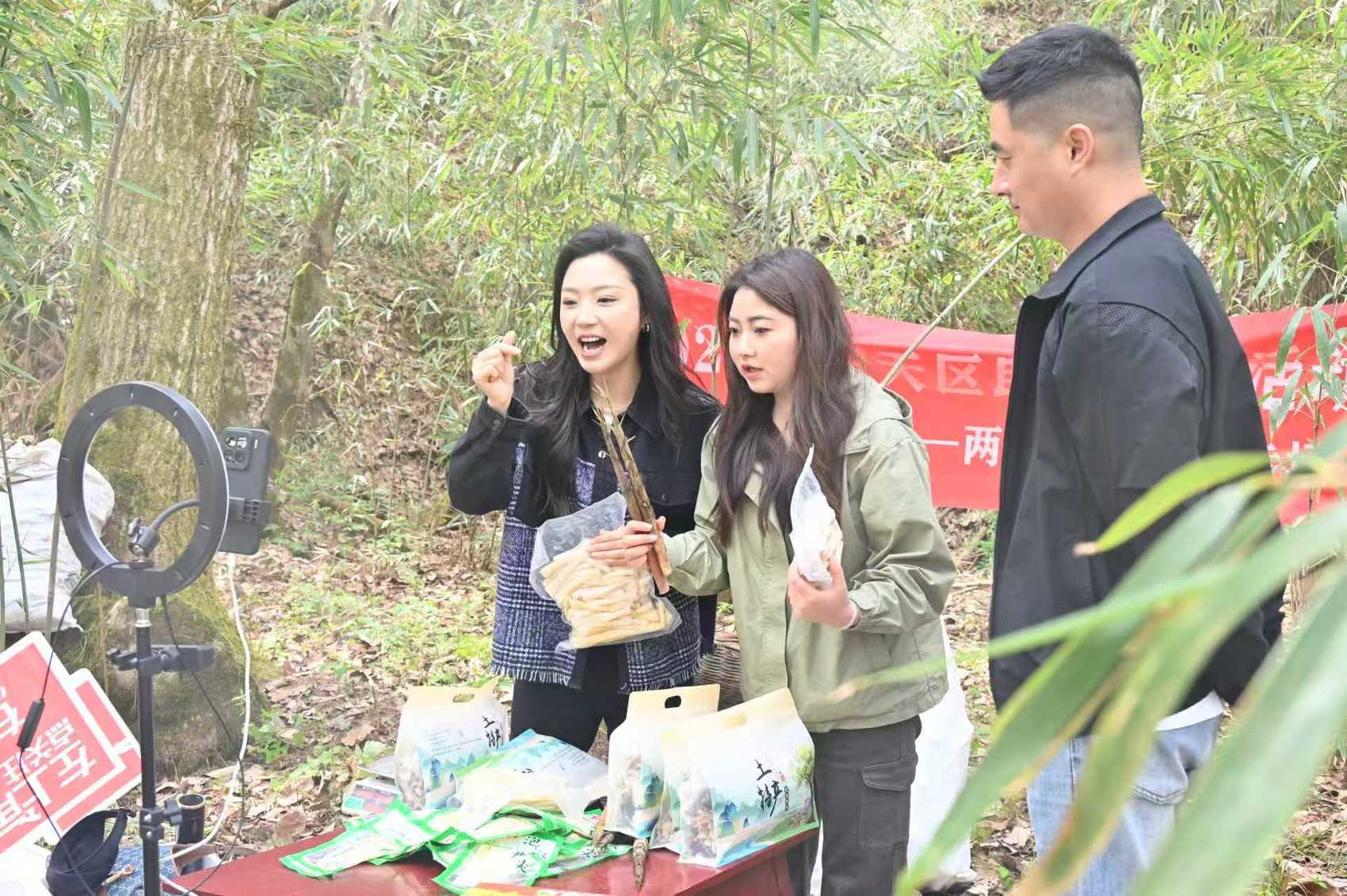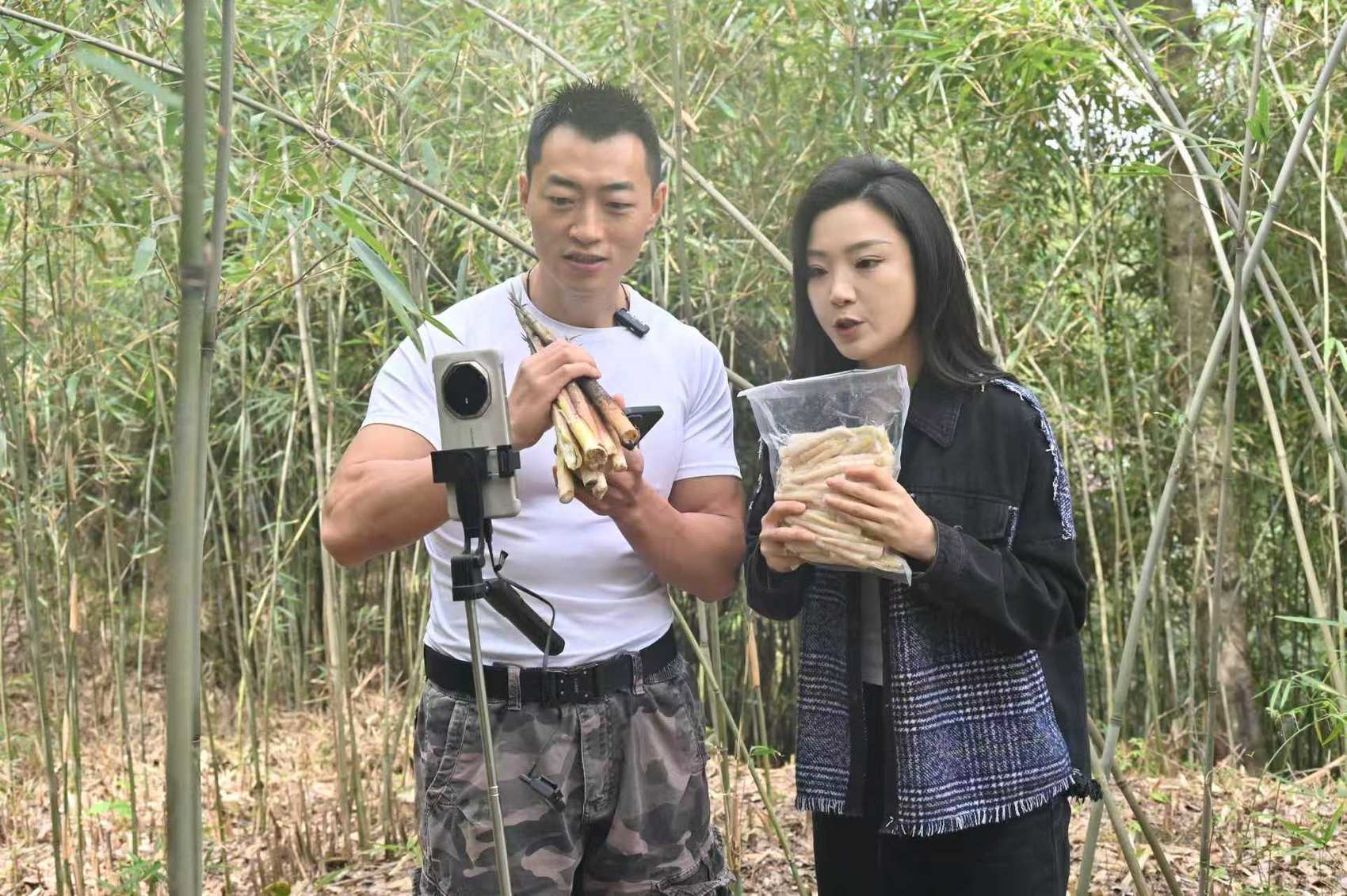 “家人们,看这刚挖的春笋,白胖鲜嫩、清香扑鼻,这些竹笋都是本地村民们现挖现剥的,品质绝对没话说。”直播镜头前,“山里鲜哥”手持带泥春笋,热情地向网友介绍。一旁,“瘦瘦”配合展示真空包装好的春笋和加工制成的泡椒笋片。弹幕滚动、订单不断,两位助农主播用接地气的语言,让深山好货“出圈”。一场2小时直播就售出竹笋近4000斤、拿下300多单,销售额超3万元,有效打通了春笋线上销售“快车道”,让高山原生态笋品直通全国消费者。
