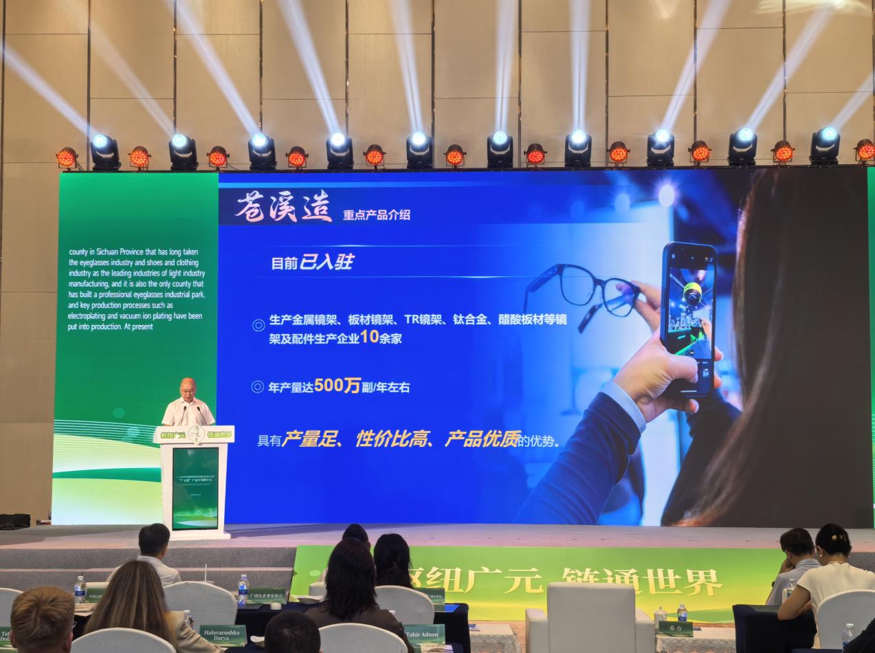 四川在线消溪(杨鸿波 赵西平)4月23日,广元市再生铝原料检验监管模式优化试点暨“广元造”产品专场推介会在广州举行。苍溪县政协就苍溪产业优势和发展机遇作专题宣传推介,重点向17家国外客商详细介绍了以眼镜制造为代表的轻工产业发展情况。