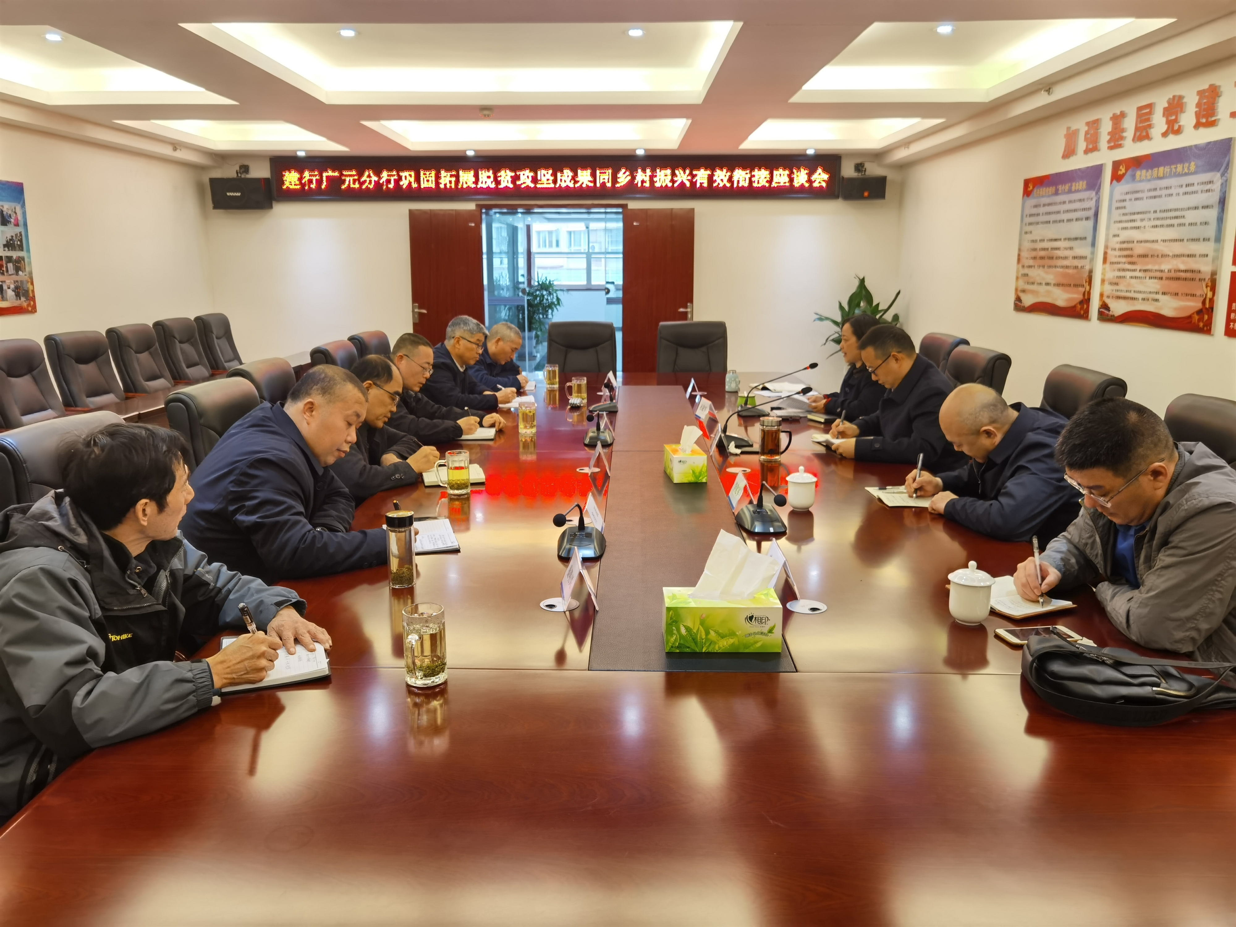 4月11日,建行广元分行召开巩固拓展脱贫攻坚成果同乡村振兴有效衔接座谈会。分行党委书记、行长刘晓和相关部门负责人,派驻朝天区大滩镇天池村、苍溪县三川镇三河村、青川县沙州镇东山村等驻村第一书记和工作队员出席会议,市扶贫开发局党组成员、副局长李建军和相关科室负责人参加会议。