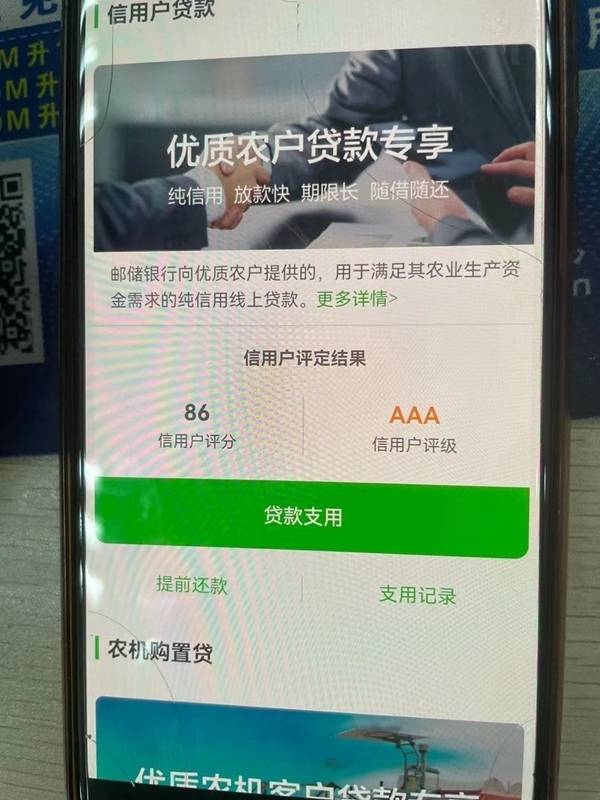 从申请到发放,农户足不出户,通过手机线上操作便可完成全流程办理。“线上信用户贷款”的推出,既解决了服务三农“最后一公里”的问题,又进一步降低了农户融资门槛和融资成本,真正解决了农户贷款“融资难、融资贵”。