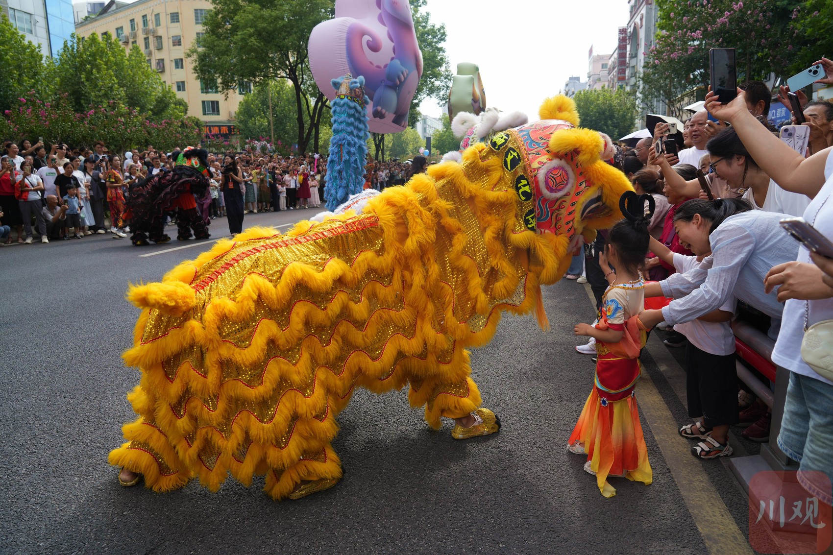 三辆主题花车成为巡游的焦点。牵头花车以“凤凰衔韵”为主题,生动展现了女皇武则天的赫赫威仪;非遗花车荟萃了白花石刻、射箭提阳戏、麻柳刺绣等五项广元非遗瑰宝;压轴花车则以大熊猫为主题,传递“广纳天下客”的开放姿态。