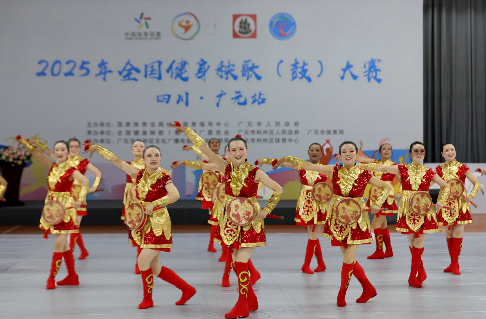 此站比赛由国家体育总局社会体育指导中心、四川省广元市人民政府主办,设健身秧歌、健身腰鼓、手拍鼓3个大类项目的规定和自选套路比赛,吸引了全国各地的12支参赛队伍、200余名参赛选手参赛。