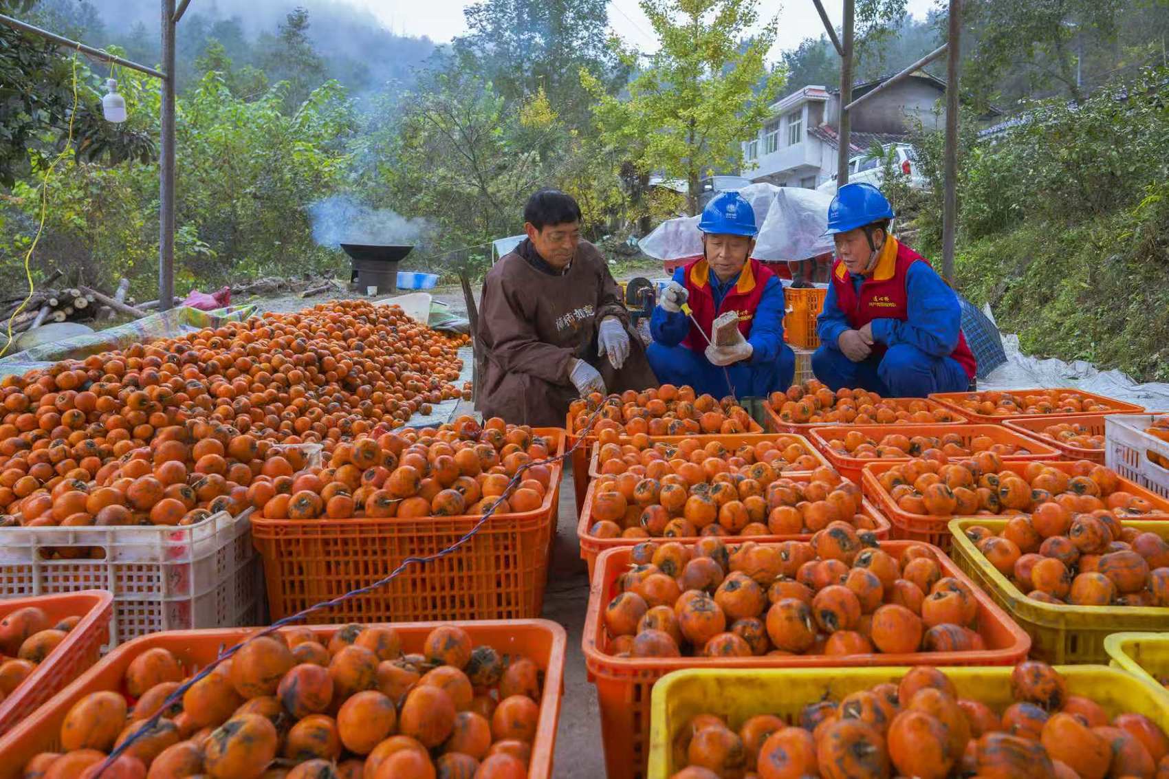 苏阳村隐匿于秦巴山区深处,村中千余棵百年古柿树果实累累,宛如村民眼中的“摇钱树”。村里以柿子产业为核心打造农旅综合体,既保留传统柿饼加工,又开发柿子主题民宿、采摘体验项目,预计今年实现综合收入300余万元。“立冬一到,合作社就要开足马力加工,电动削皮机连轴转,用电可不能掉链子。”合作社社长罗玲指着车间里的设备说。