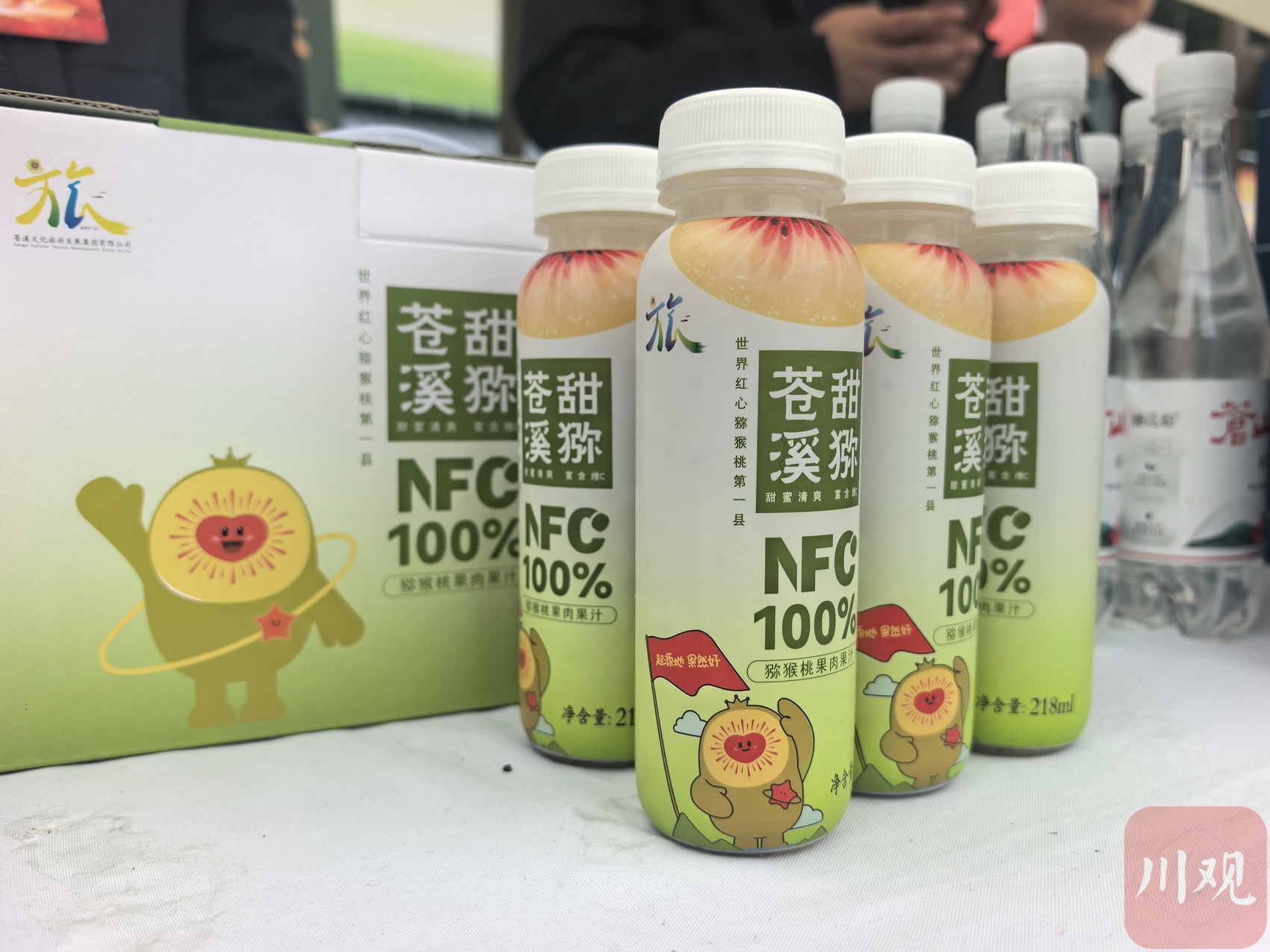 “‘余满苍’猕猴桃汁是东西部协作成果,原材料选自苍溪本地猕猴桃,采用先进工艺制作,酸甜爽口。”展位工作人员现场推介产品。赛事期间,苍溪文旅集团开发的寻乐书岩茶产品、县供销合作社推出的猕猴桃挂面等特色产品,吸引不少观众驻足品尝、选购。