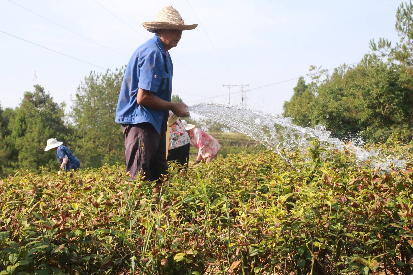 最近,石义良又找来车辆,从5公里外的堰塘里运水浇灌,保障茶树健康生长。