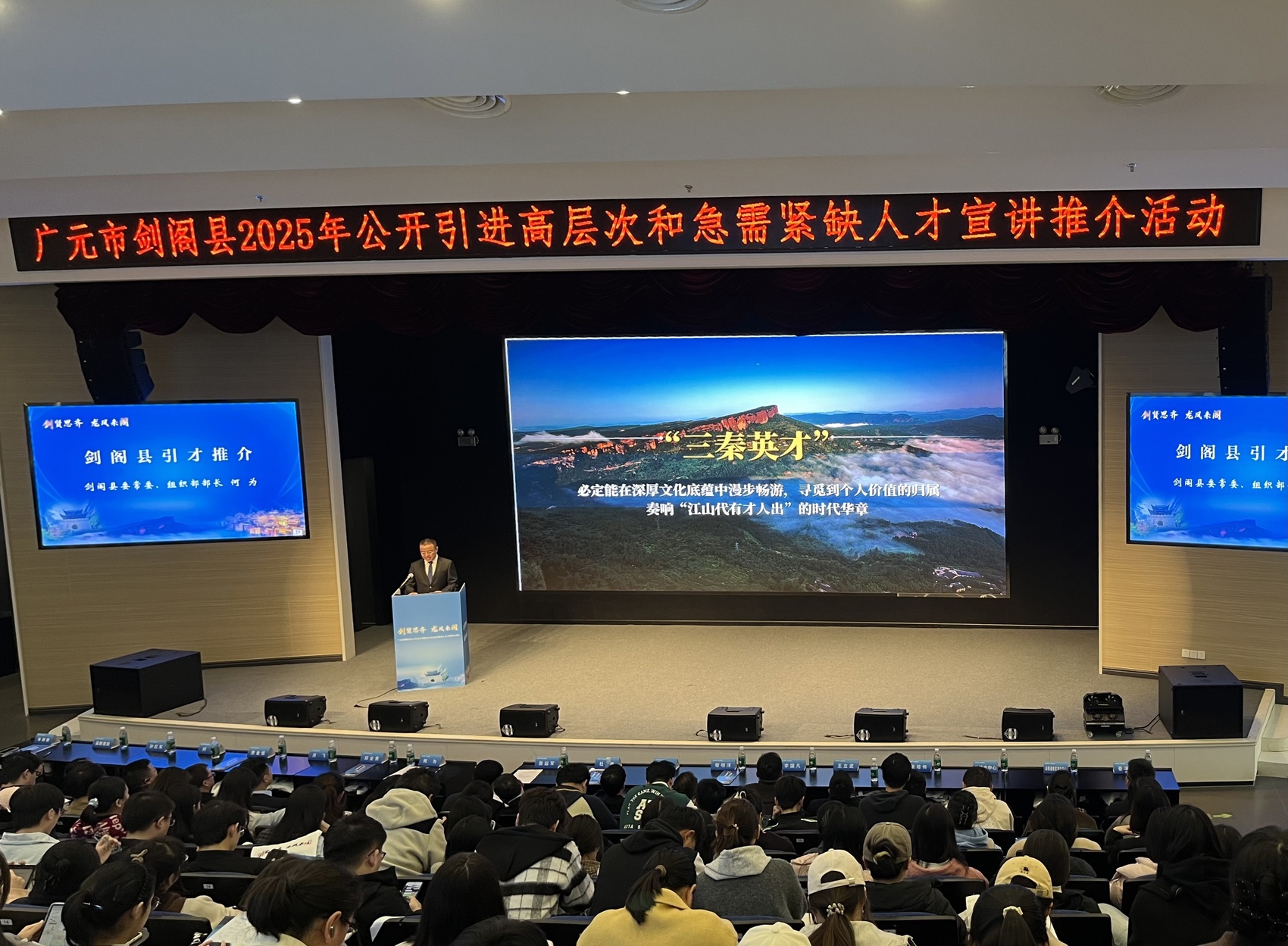 剑阁县委常委、组织部部长何为以“逐梦大蜀道·圆梦剑门关”为题,向在场学子作了生动推介。他表示,剑阁不仅是承载千年蜀道文化与三国历史的名城,更是一座快速发展的现代化县域。