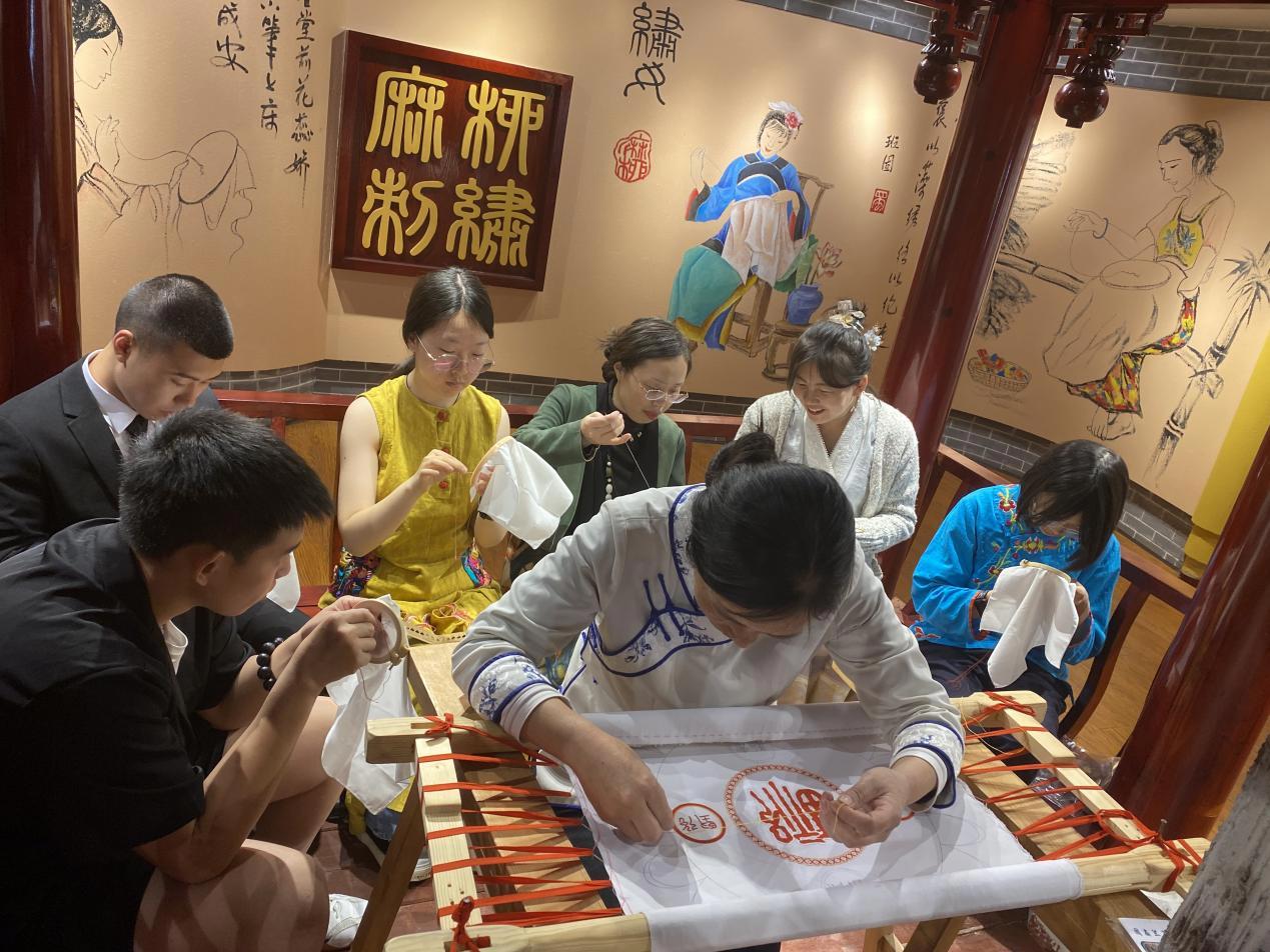 活动结束时,师生们对自己的“处女作”爱不释手。Taya老师捧着绣好的缠枝莲感慨:“原来我们对‘美’的追求是相通的,这种‘慢下来’的匠心太珍贵了!”学生们纷纷将绣品分享到社交平台,自豪地宣称:“这是中国老师教我的手艺,是最特别的礼物!”