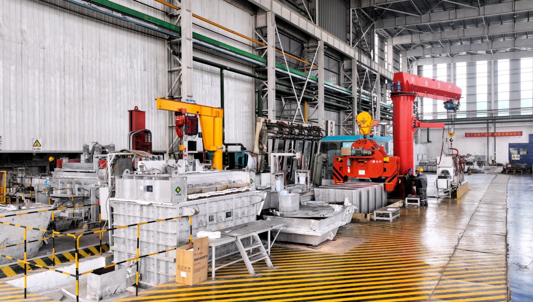 四川中孚科技发展有限公司加工分厂正在吊运刚刚生产出炉的大板锭。