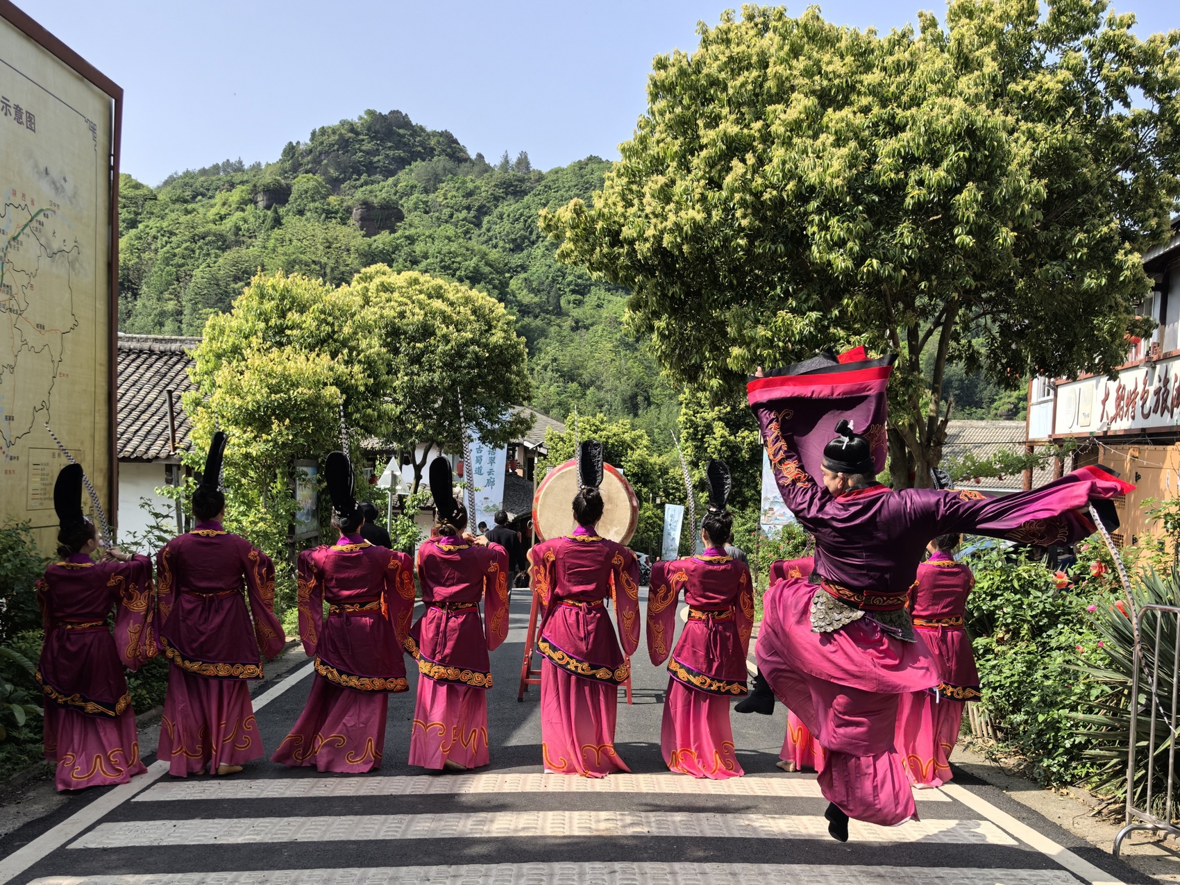 大朝驿入口处,演员跳起蜀道迎宾舞。严佳敏 摄