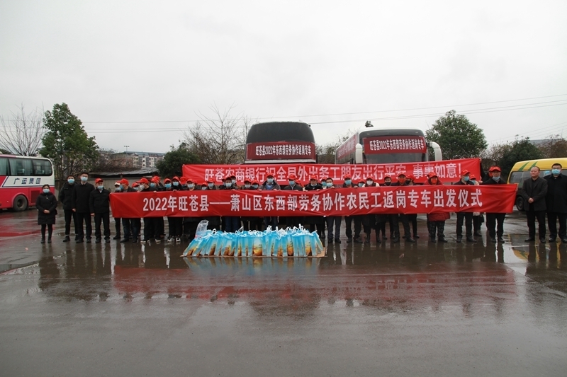 四川在线消息(杨鸿波 王凡)2月18日, 2022年东西部劳务协作旺苍至杭州萧山区农民工务工返岗专车出发仪式在旺苍县新汽车客运站举行,80名农民工在欢送声中,统一乘坐专车前往杭州萧山区返岗复工,开启新一年的返岗就业之路。