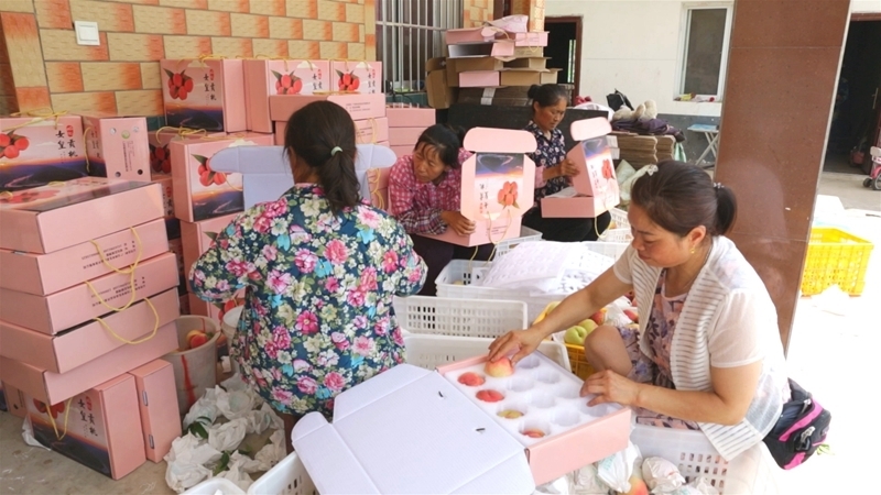 14日,笔者走进桃博园,只见颗颗饱满的水蜜桃挂满枝头,像一盏盏粉红色的小灯笼“点亮”了整个园区。种植大户刘大学和工人们连日来忙着将采摘下来的鲜果进行分拣、装盒,第一时间通过邮政快递发往各地的客户手中。