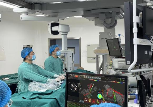 “传统射频消融术依赖X射线实现可视化操作,医生需身披几十斤重的铅衣‘负重作战’,患者也面临辐射累积风险。而ICE技术就像在心脏内安设了‘实时监控系统’,结合三维解剖标测系统构建的心脏模型,能精准追踪导管位置,显著降低并发症发生率,手术成功率大幅提升。”张邱兵主任介绍道。