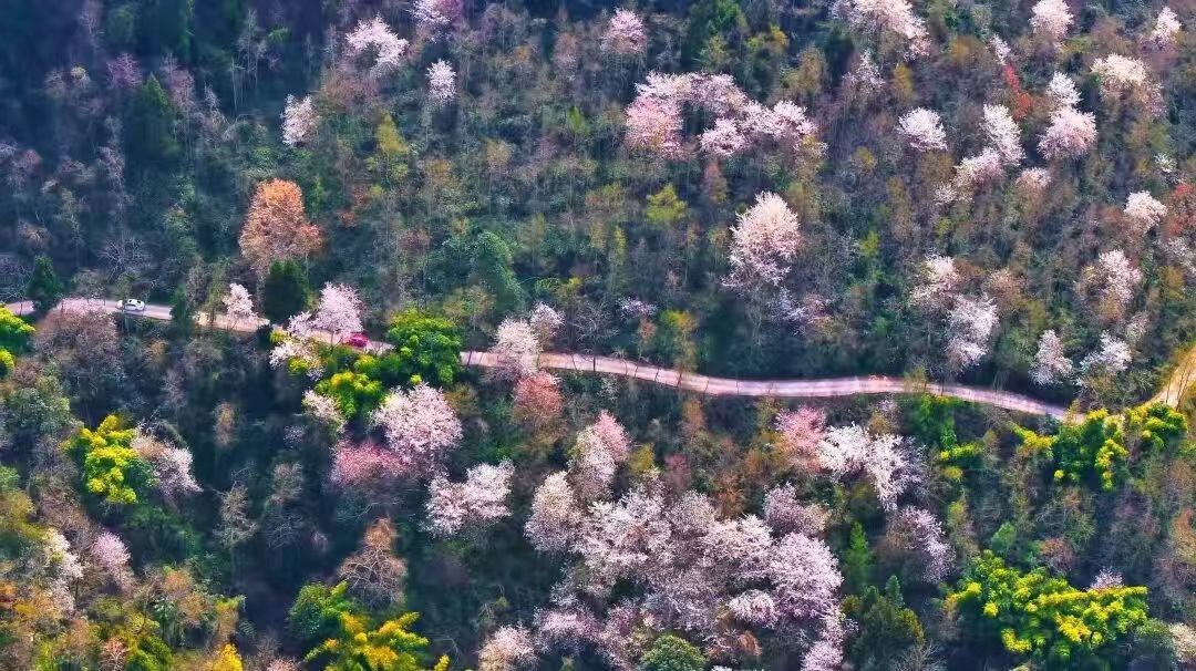 从一朵野樱花到一片花海,从单一赏花到多元业态。旺苍县以花兴业、以旅促农,正在实现走农文旅深度融合的乡村振兴路径。(旺苍县融媒体中心供图)