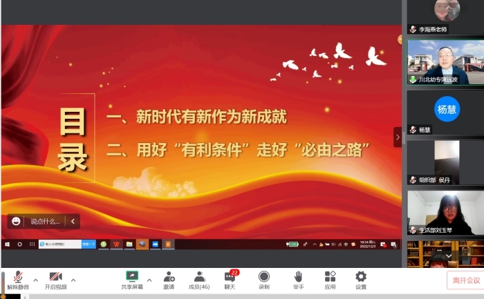 四川在线消息(高志农)近日,川北幼儿师范高等专科学校党委委员、副校长蒲远波深入该校初等教育学院,以“伟大时代的历史跨越”为主题,为学院师生线上讲授形势与政策课,初等教育学院全院教师和学生参加。